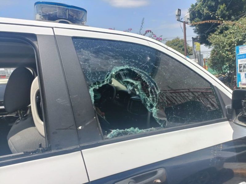 La gente agredió con piedras, tubos y cubetas, entre otros objetos, a los policías, y dañaron dos unidades oficiales.