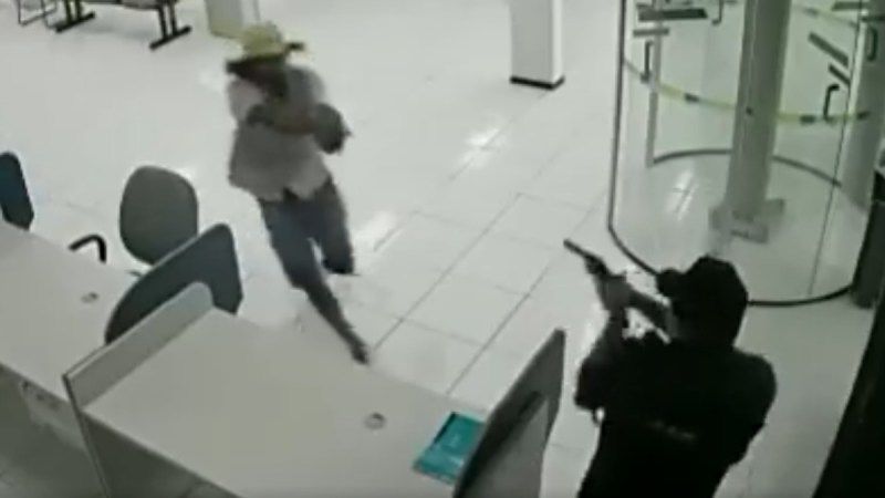 En redes sociales se hizo viral el momento en que un guardia de seguridad repelió un intento de asalto en un banco de Brasil.