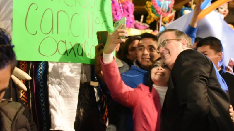 Entre música y vítores habitantes de Oaxaca felicitaron al canciller por su cumpleaños número 63.
