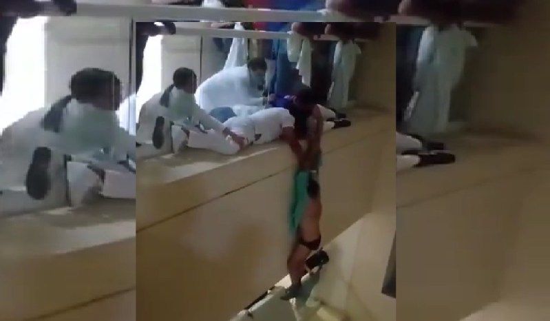 El paciente subió al último piso del hospital, pero en su intento por arrojarse fue tomado de las muñecas por dos empleados, quienes a su vez fueron sostenidos por varios compañeros.