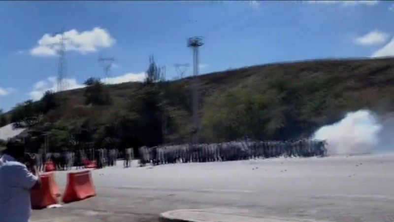 #ÚltimaHora Normalistas se enfrentan con elementos de la Guardia Nacional, quienes impiden la toma de caseta de Palo Blanco, en Chilpancingo, Guerrero pic.twitter.com/sblvOK98tC