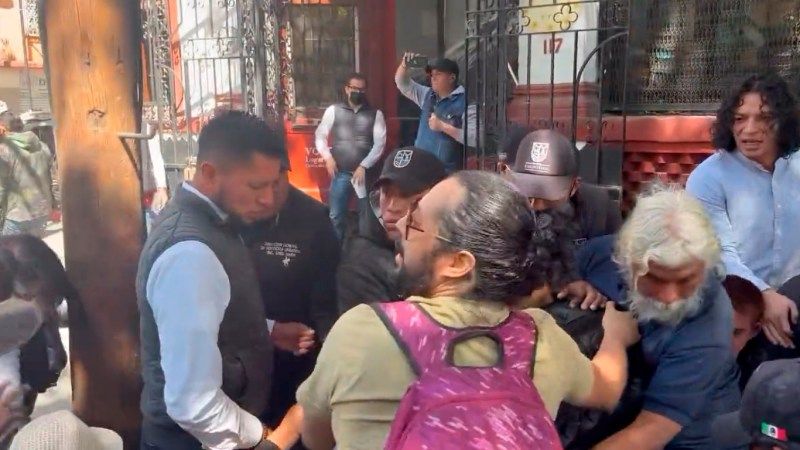 Personal de la alcaldía Cuauhtémoc procedió a retirar las bocinas de los manifestantes, lo que desató una riña.