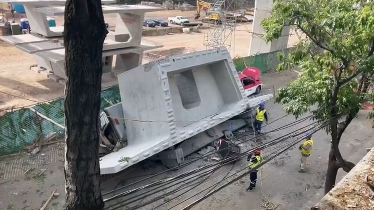 Autoridades de la Ciudad de México trabajan en el retiro de la estructura que cayó durante la construcción del Tren Interurbano México-Toluca.