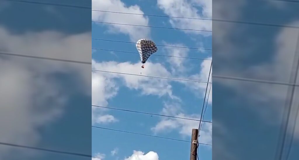 Al cabo de varios minutos de vuelo se observó que el hombre a bordo se colgó de la canastilla para evitar el fuego, pero cayó desde lo alto.