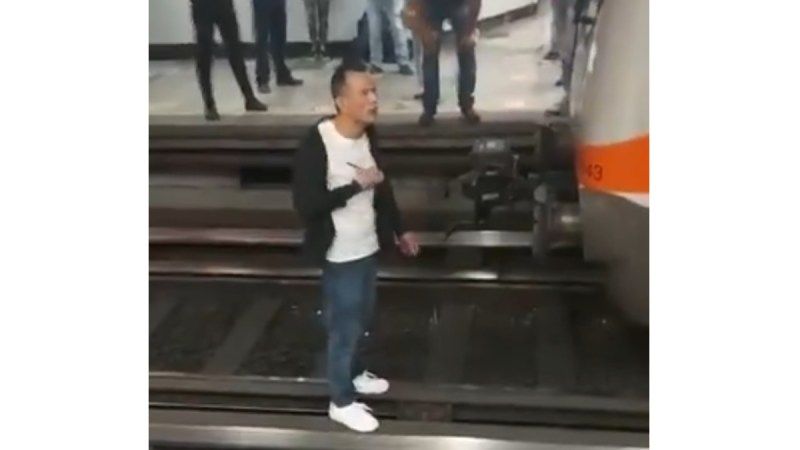 Videos compartidos en redes sociales muestran al sujeto en las vías, mientras la conductora de un convoy lo llama para que se acerque a la cabina.