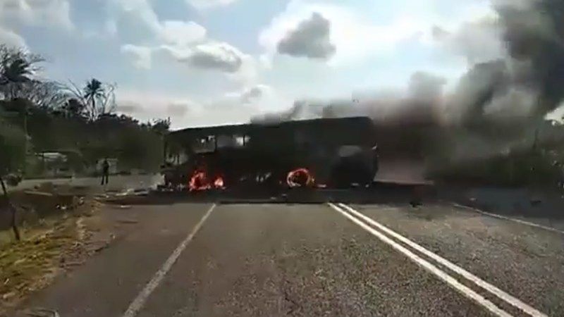 Habitantes de Juchitán, Oaxaca, quemaron un autobús propiedad de Petróleos Mexicanos (Pemex) para exigir la anulación de las elecciones locales realizadas el 13 de marzo pasado.