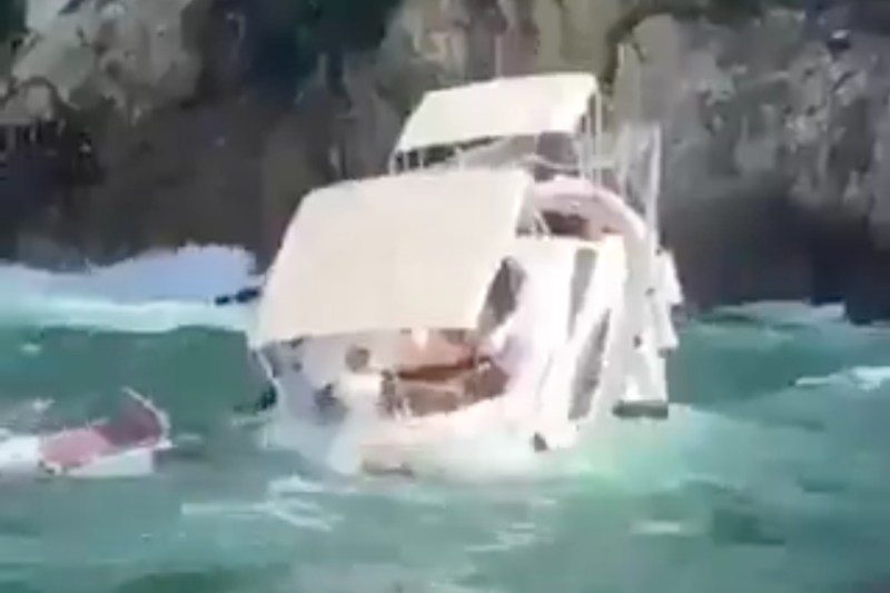 Un yate con turistas se hundió en la zona de La Quebrada en el puerto de Acapulco después de golpear un risco.