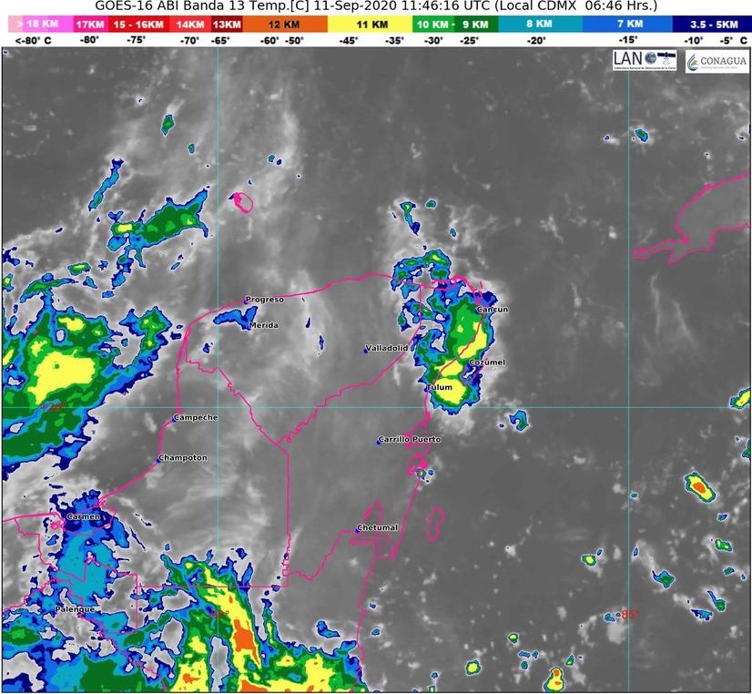 En ese sentido, según la valoración y análisis de la información meteorológica en general realizada y lo relativo a los pronósticos del Servicio Meteorológico Nacional; se reporta presencia de una onda tropical al oriente del Golfo de Honduras, que se espera en las próximas 12 a 18 horas empiece a influenciar la porción sur de la Península de Yucatán; generando lluvias con algunos chubascos con posibilidad de actividad eléctrica; no presentan condiciones favorables de evolucionar en un sistema tropical, según información del Centro Nacional de Huracanes de Miami, Florida.