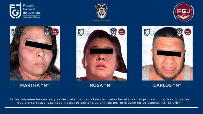 La Fiscalía General de Justicia (FGJ) capitalina detuvo a Martha N., Rosa Itzel N. y Carlos Alberto N. por el homicidio de Isabel y Concepción, así como de sus dos hijos, de 2 y 4 años de edad.
