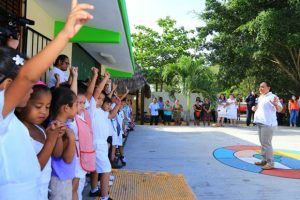 PLAYA DEL CARMEN, Quintana Roo, 29 mayo.- “La educación es una gran herramienta para que nuestros niños y jóvenes puedan contribuir al fortalecimiento y recuperación de la grandeza del municipio, con sus ideas, su creatividad y dando el ejemplo a los mayores”, señaló la Presidenta Municipal de Solidaridad, Cristina Torres Gómez, ante más de 150 alumnos del Preescolar “Luis Donaldo Colosio”, ubicado en el fraccionamiento El Petén, durante el Programa de Acción Escolar (PAE).