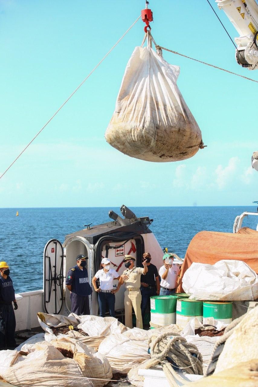 Asimismo, constataron el trabajo que realiza la sargacera Hystrex BSC-202 en las cercanías de la costa portomorelense.