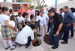 En el evento, alumnos de quinto y sexto grado ayudaron a trasplantar una ceiba y se comprometieron a regarla y cuidarla, toda vez que es un árbol sagrado para la cultura maya que representa, entre otras cosas, el ciclo de la vida.