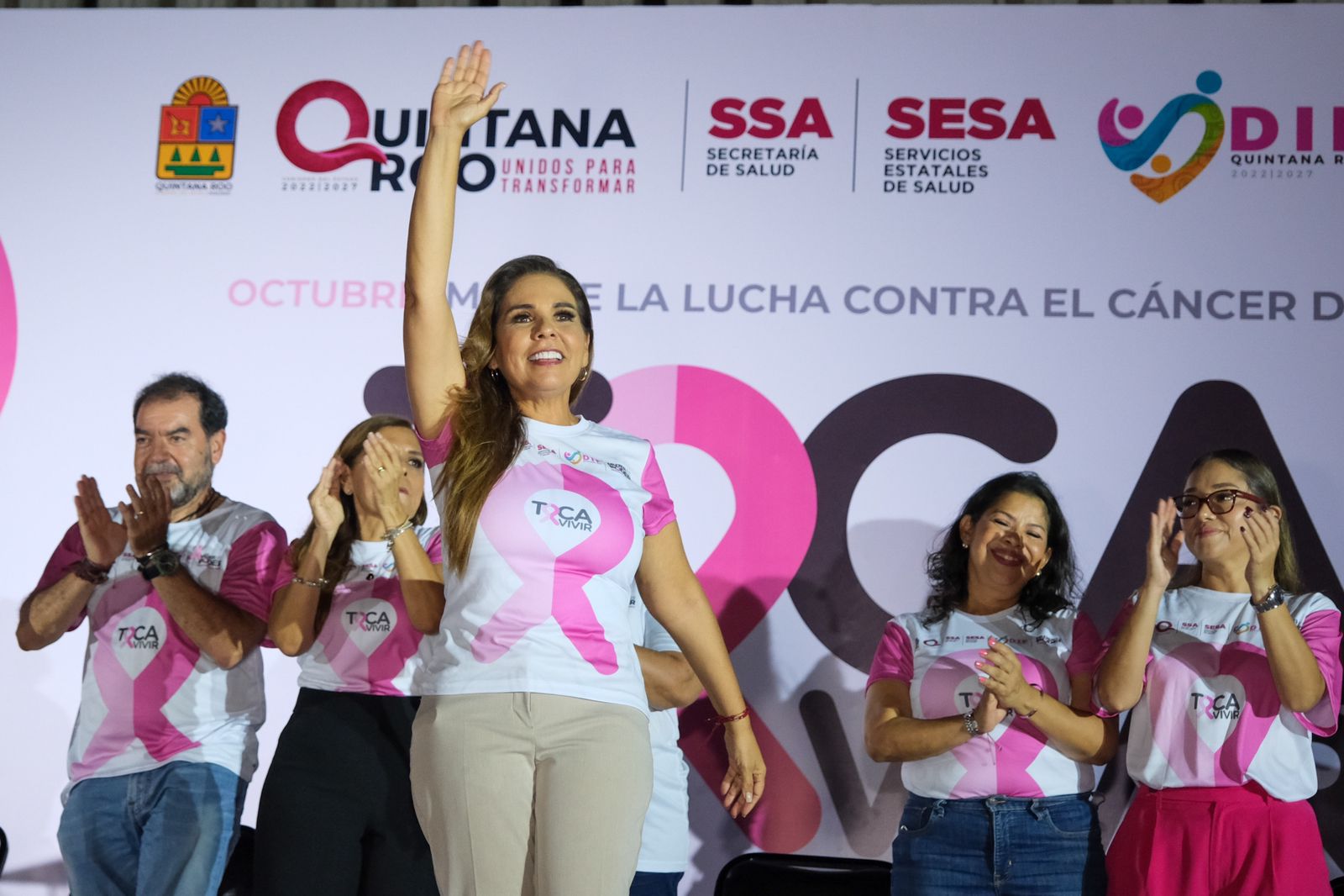 En este encendido, Mara Lezama estuvo acompañada de la presidenta honoraria del Sistema DIF Quintana Roo, Verónica Lezama Espinosa, y del secretario de salud, Flavio Carlos Rosado. “Que se escuche fuerte y claro de norte a sur, de este a oeste, la salud de las mujeres es un asunto vital, es prioritario para esta administración”, expresó la titular del Ejecutivo.