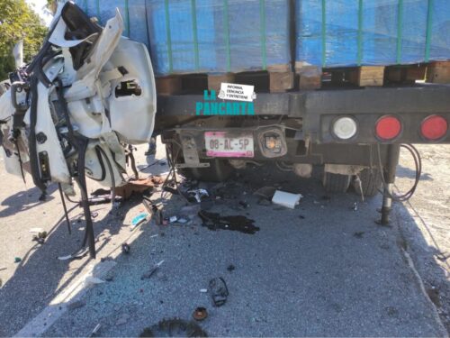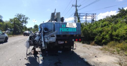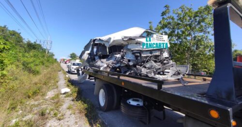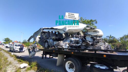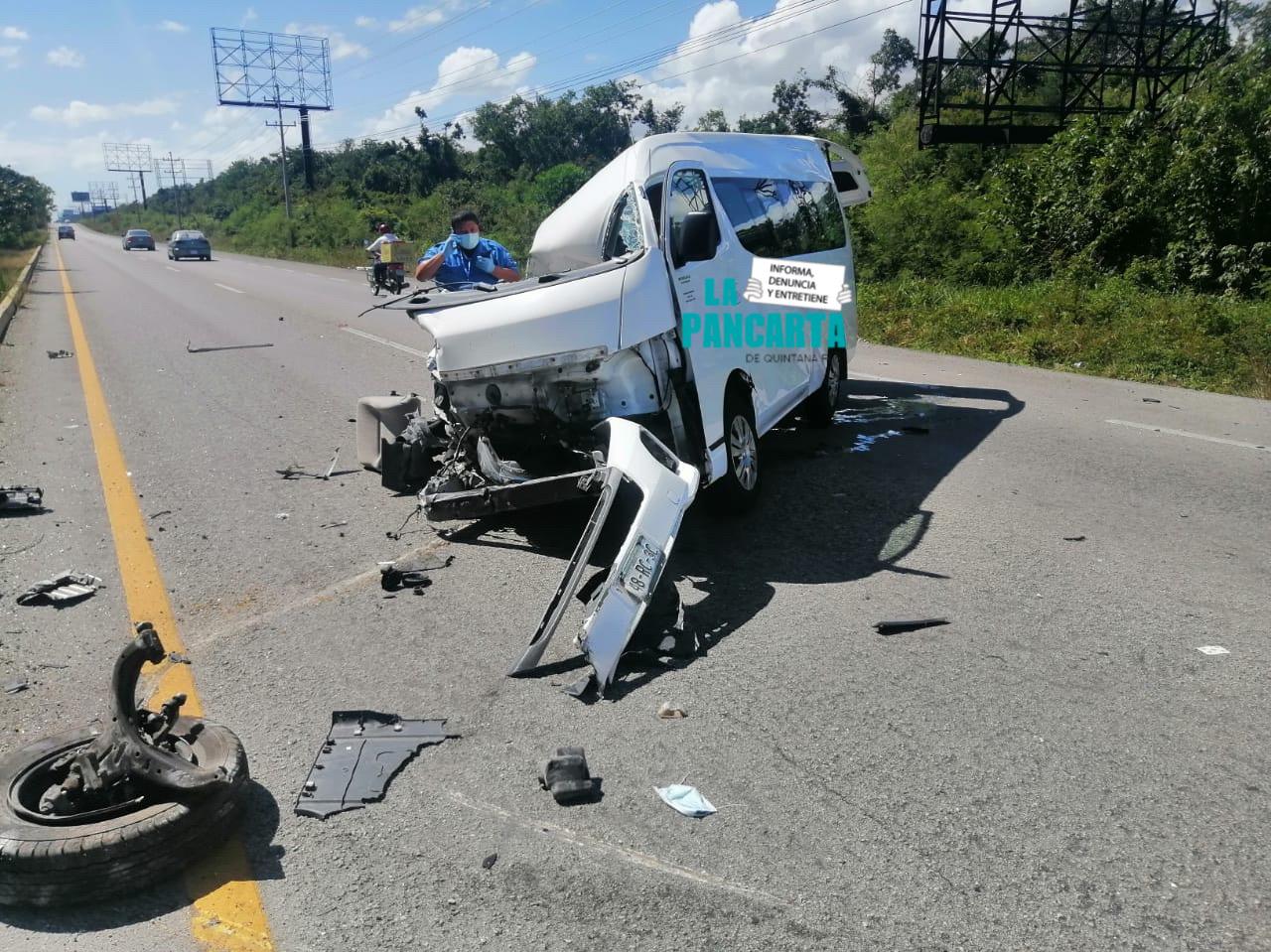 Los hechos ocurrieron Alrededor de las 1:00 de la tarde sobre la carretera federal 307 kilómetro 314, donde el conductor de la van de una empresa de tours, circulaba a exceso de velocidad y al quedarse dormido por unos segundos, colisiono contra la parte trasera de un camión de carga que se encontraba estacionado, afortunadamente no traía pasajeros la unidad de transporte privado.