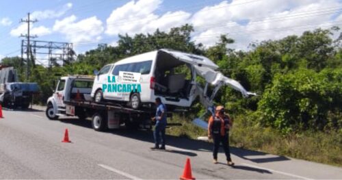 PLAYA DEL CARMEN, Quintana Roo, 05 de febrero. – Fuerte accidente se registró sobre la carretera federal 307, debido a que el conductor de una van dormito al volante.