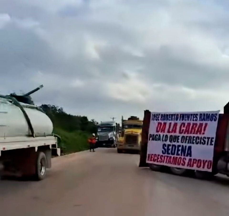 Los inconformes piden que la empresa Grupo Constructora Maya Dorado, libere los recursos que se adeudan o no concluirá este bloqueo.