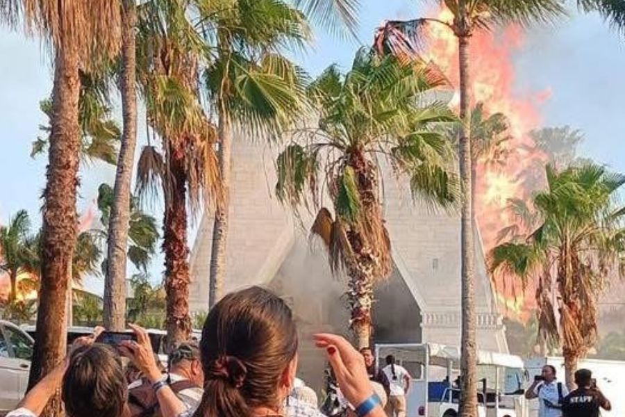 El área afectada fue acordonada como medida preventiva, mientras personal del hotel activó sus protocolos internos de seguridad y evacuación.