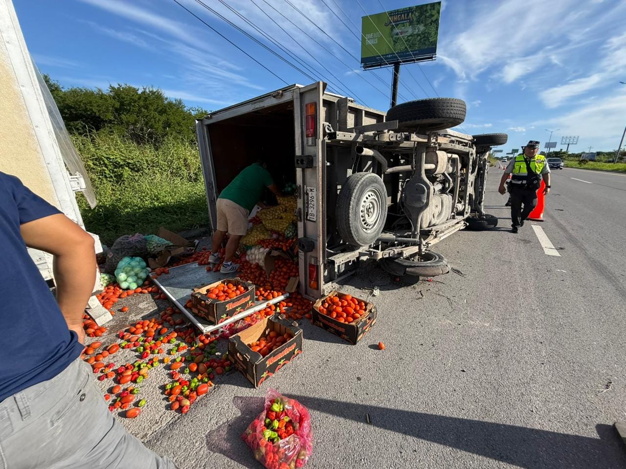 La camioneta transportaba verduras, las cuales quedaron esparcidas sobre la vía, generando afectaciones momentáneas a la circulación. Minutos después, compañeros de trabajo del conductor arribaron al lugar para realizar el trasbordo de la mercancía a otra unidad.