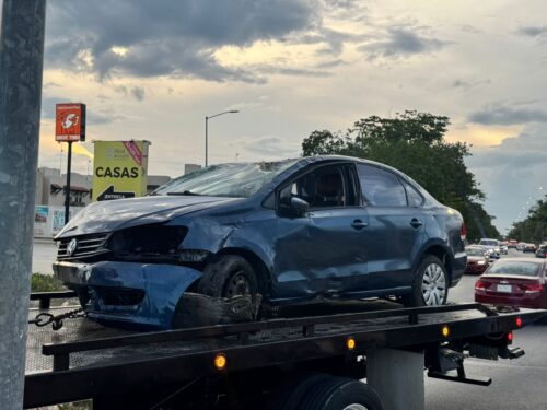 El accidente ocurrió sobre la avenida Solidaridad, entre las avenidas Flor de Ciruelos y Guayabas, cuando el chofer de un Volkswagen Vento color azul circulaba en dirección oriente. Al llegar a la curva frente a una pizzería de la zona, perdió el control, montó el camellón central y terminó en un lote baldío.
