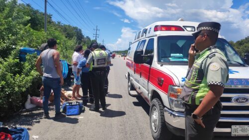 TULUM, Quintana Roo, 14 de septiembre de 2025.– Una familia sufrió un aparatoso accidente este sábado por la tarde sobre la carretera federal Tulum–Playa del Carmen, a la altura de la comunidad de Chemuyil, luego de que el conductor intentara esquivar una piedra en el camino.
