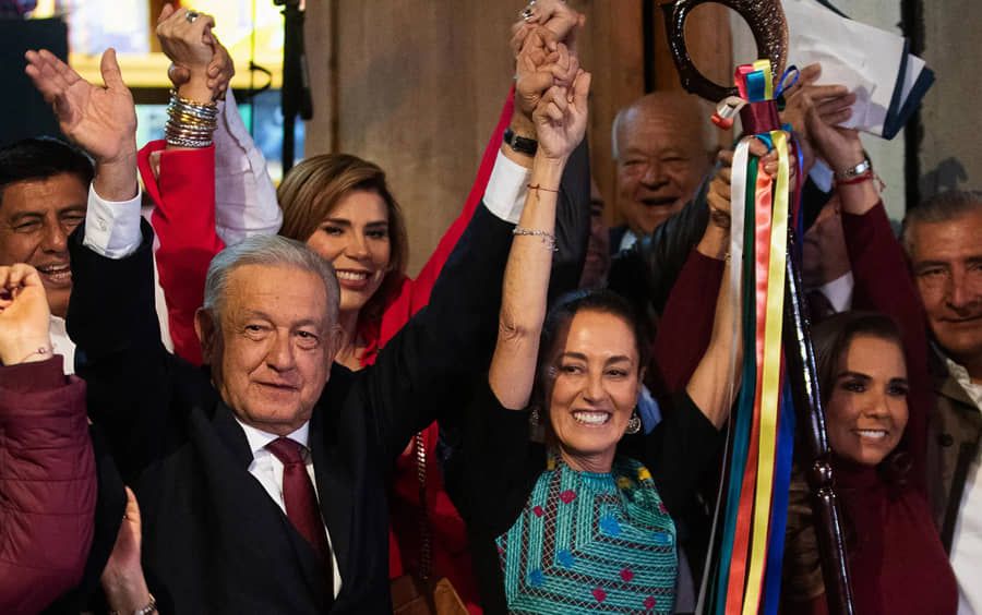 Retomando un ritual de los pueblos indígenas mexicanos, López Obrador cedió el bastón de mando a Sheinbaum, en lo que fue un baño de masas, a las afueras de un restaurante -por no ser un acto oficial- a unos pasos del Zócalo capitalino, la plaza pública y política más importante del país.