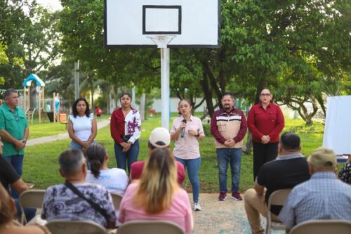 La alcaldesa capitalina hizo la presentación formal del proyecto ante vecinas y vecinos de la colonia, estando acompañada del presidente del Comité de Vecinos, Efren Magaña; del diputado Saulo Aguilar, así como de las regidoras Sonia Betancourt, María Vázquez, Mayra Cunil y los regidores Daniel Linares, Ulises Lara y Gustavo Pech.