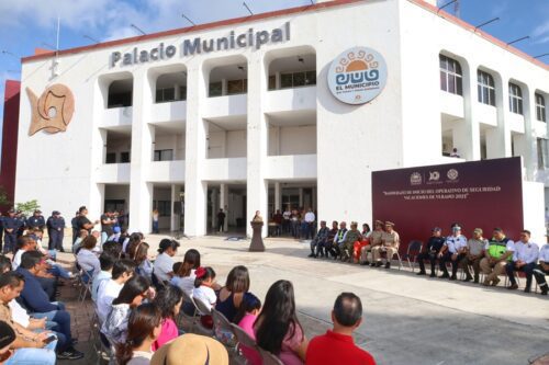 CHETUMAL, 11 de julio. Con el firme compromiso de proteger y salvaguardar la integridad física de turistas locales, nacionales, internacionales y población en general durante esta temporada vacacional, la presidenta municipal de Othón P. Blanco, Yensunni Martínez Hernández, encabezó el banderazo oficial del Operativo de Seguridad Vacaciones de Verano 2025.