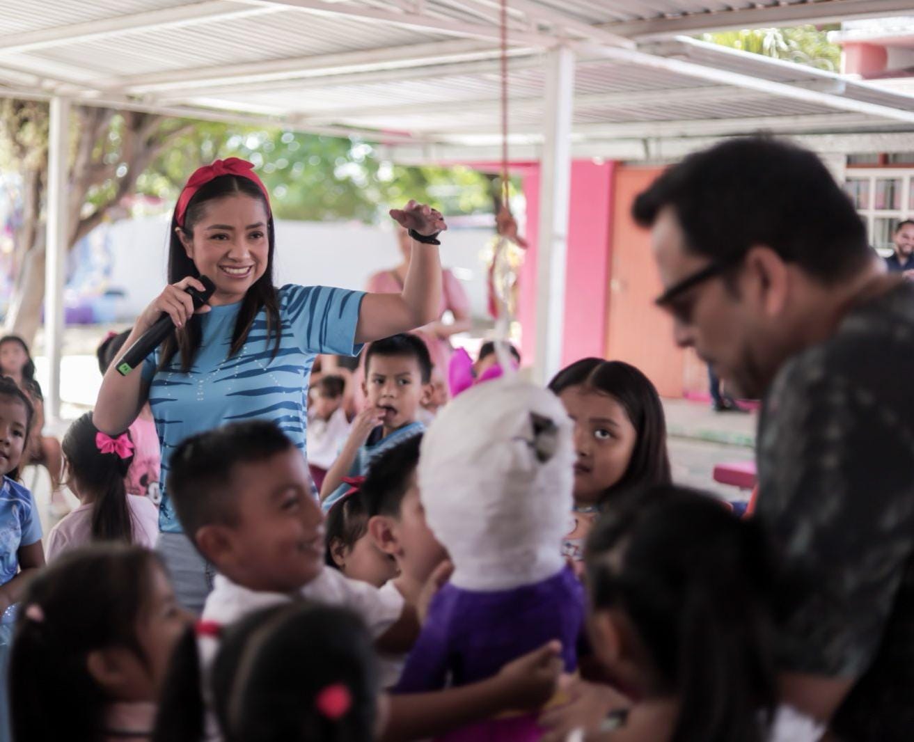 También agradeció a las maestras y directoras por el cálido recibimiento, a quienes externó toda su admiración porque son pilar fundamental en el desarrollo y aprendizaje de las niñas y niños.