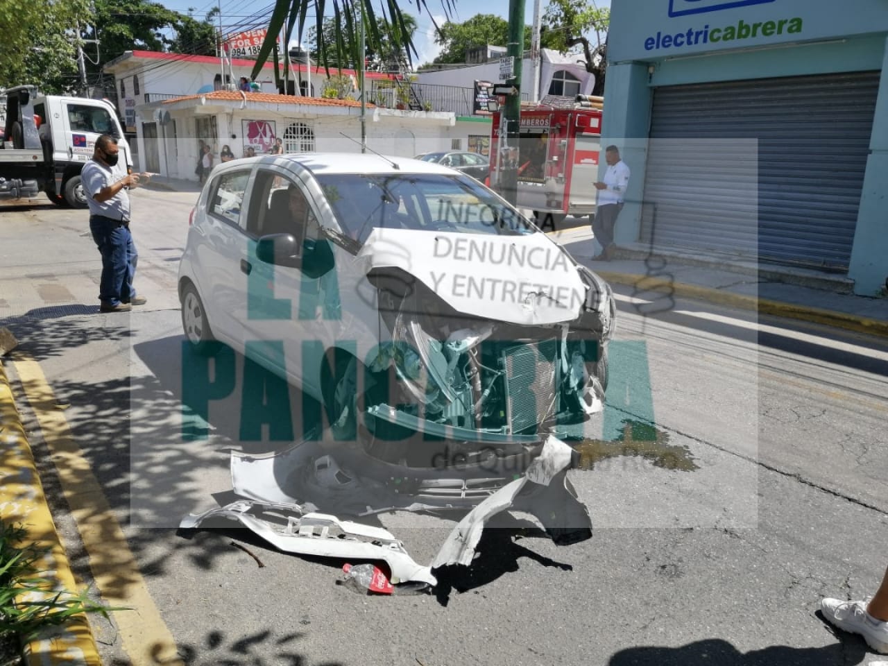 PLAYA DEL CARMEN, Quintana Roo, 06 de septiembre.- Una mujer detenida, el chófer y pasajeros de una urvan de transporte público “sarandeados”, y dos vehículos destrozados parcialmente es el saldo de un accidente en la avenida 30, con calle 1° en el centro de Playa del Carmen.